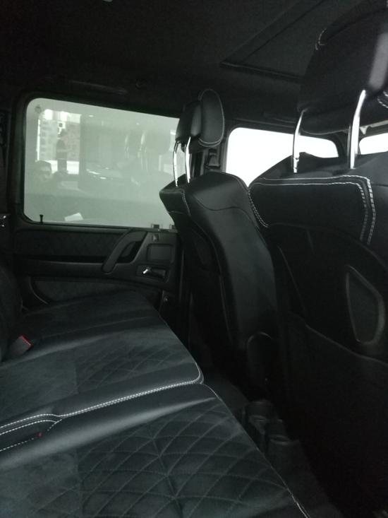 18款美规奔驰G 4x4离地距离 450mm、涉水能力 1米、轮胎间距 1.744mm、3种驱动模式、22寸轮毂、每个轮胎带有两个减震器及两个悬架弹簧 22轮;红卡钳;双减震;单天窗;氙气大灯;LED日行灯、18向多轮廓电动包裹座椅;翻毛皮内饰(皮+翻毛皮双拼座椅;翻毛皮方向盘;翻毛皮门板;翻毛皮内顶);前座椅加热通风;二排座椅加热;哈曼卡顿音响(14个扬声器);三把差速锁;碳纤维内饰套件;脚踏;前雷达;倒影;导航;多功能方向盘;定速巡航;换挡拨片。奔驰G5004x4搭载4.0LV8发动机,机械增压器的装备使得它在近1800rpm时就能爆发出80%的最大扭矩,具有216kw/5500rpm的最 大功率和456nm/2800-4000rpm的最大扭矩。底盘有好几道加强梁进行加固,前后整体桥式悬挂系统粗壮无比,绝对是最强壮的民用车之一。