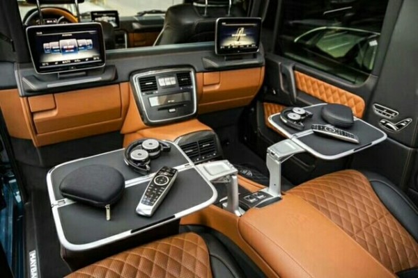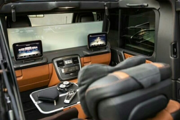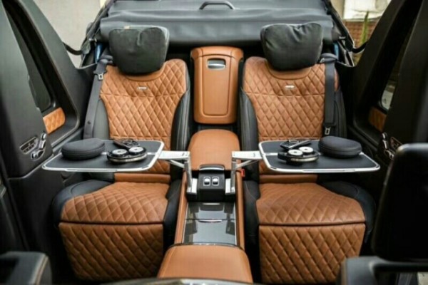迈巴赫G 650 Landaulet的内饰采用米黑双色的配色,中控台、门板、方向盘及座椅大量采用真皮材质包裹,奢华感十足。当然,作为一辆“迈巴赫”,新车的最大的亮点还是在于第二排的配置和布局。