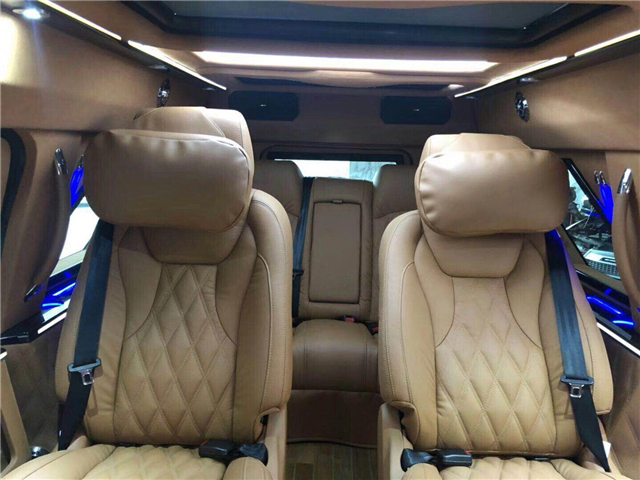 后排空间采用了一个私密处理,中间采用了一道隐私隔离玻璃,最大程度的满足了后排乘客的私人空间,同时空间也是非常的大,该车还采用了两个航空级别的座椅,各种按摩舒适性功能一应俱全,豪华感还是不错的。