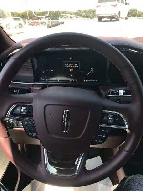 林肯领航员新款中控台有所改变,变化比较现代感,与老款对比现代感十足,换挡位置有所改变,换挡从手推改成按键,凸显现代化高端商务车型。林肯领航员的三幅式多功能方向盘带加热功能,真皮包裹方向盘兼具温润触感与典雅质感,三幅式设计令操控更加得心应手,在尊崇气息之上平添一分动感魅 力。真皮部分可在短时间内加热,即便在寒冷的天气状况下,也能保持对温度的掌控感。内饰豪华气派,做工精细。车内大量皮质和实木材覆盖,让人即刻尊享定制 体验。19款林肯领航员采用12英寸全液晶的仪表盘,悬浮式显示屏,科技感十足。