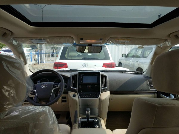 2019款酷路泽5700VXR现车86万优惠到店详谈 配置: 天窗,底挂备胎,七座,8速,12气囊,18轮,138L油箱,遥启,巡航定速,无线门锁,智能无钥匙入住,双区自动空调,中央锁定,冰箱,真皮桃木方向盘,丝绒座椅,一键启动,动力转向,电动窗,桃木内饰,新款中控大屏,自动调光可折叠后视镜,主驾电动座椅,多功能方向盘,防抱死制动系统(ABS),辅助刹车(BA),前雾灯,后雾灯,轮胎压力监测系统,电子制动力分配装置(EBD),车辆稳定控制(VSC),爬行控制(CC),主动牵引控制(ATRC),爬坡辅助控制(HAC),手动大灯调节,带DRL的LED大灯,镀铬门饰前格栅