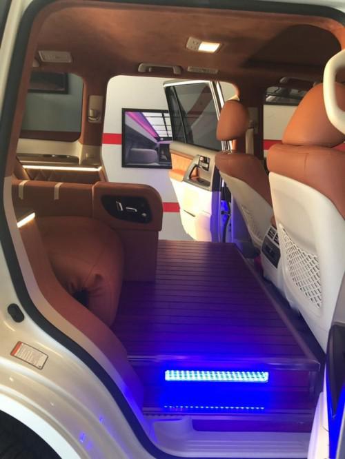 这位车主将新购买的爱车,外观和内饰全部大换血,尤其是内饰的改变可以用翻天覆地来形容,将原本是七座的酷路泽生生变成了四座,去掉了第三排座椅,第二排座椅换成了两个独立的航空座椅,在脚下铺上了地板,将一台硬派越野SUV变成了一台商务车型,不得不说车主也是够拼的了,就是要让自己酷路泽像商务一样舒服。