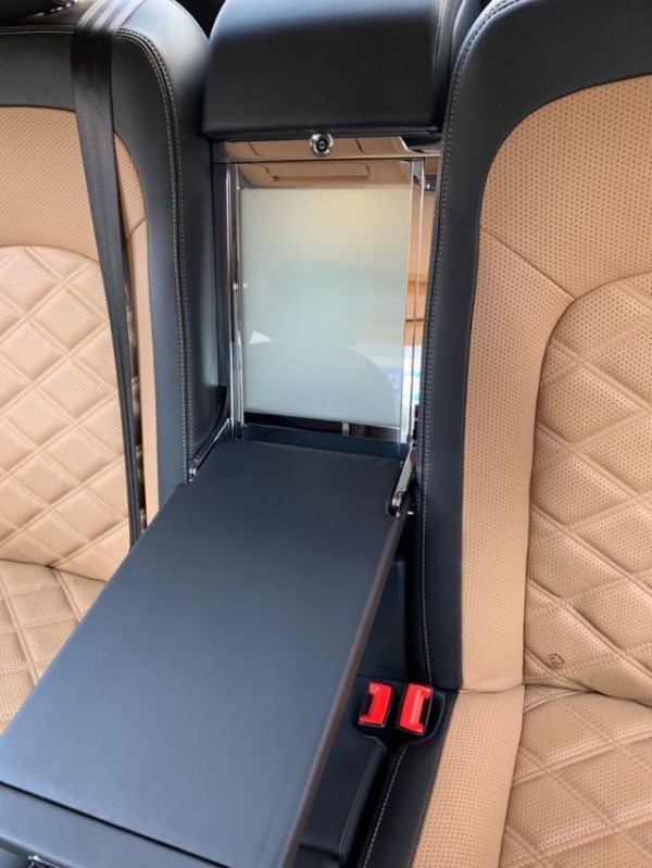 19款宾利慕尚加长版后排两个独立“航空级”座椅视觉上就可以感受到舒适性和柔软性,在原本拥有的实木小桌板的基础上又额外增加了两块隐藏小桌板,面积足够大,防滑性能也很好,使用更加方便。座椅甚至可以调节至平躺状态,堪比大型飞机的商务舱,后排两块10.2英寸的后排多媒体娱乐显示屏不仅带有伸缩功能,还可独立拆下,作为一个平板电脑使用,功能及其强大。