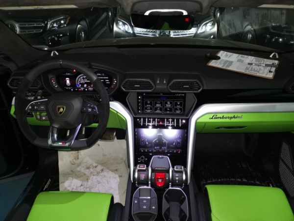 兰博基尼Urus在内饰上采用了飞机座舱的设计,以驾驶者为中心,三屏设计使得整个车内有着很强的科技感。中控台有上下两块内嵌式中控屏幕,上方大屏内置的多媒体系统支持苹果CarPlay,下方屏幕控制座椅加热通风、空调系统。翻盖式的点火按钮,在你点火的一刹那,仿佛可以征服整个世界。值得一提的是,配备了12喇叭 Bang&Olufsen音响系统,为驾乘者带来了无与伦比的听觉盛宴。Urus内饰用料只能用奢侈来形容,包括顶级皮革、Alcantara材料、铝、碳纤维和木材。每一细节都经过精心打磨。