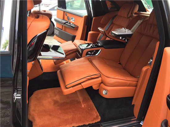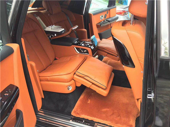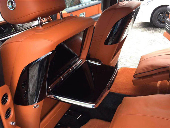 劳斯莱斯幻影后排才是重中之重,电动折叠板和后排影院系统被巧妙的隐藏在前排座椅的椅背后,只需轻触按钮,便可以自如收放桌板和影院系统,带来完美的剧院体验。后排中央固定扶手做了重点优化,其中国可容纳带有威士忌酒具的酒柜、香槟酒具和冷藏箱,方便乘客畅快交谈,后排座椅角度可以任意调节,这一设计让客户无需转头便可视线自如交流。整个车厢内饰全部以最精美的高档材料装饰,使车内极具触感。