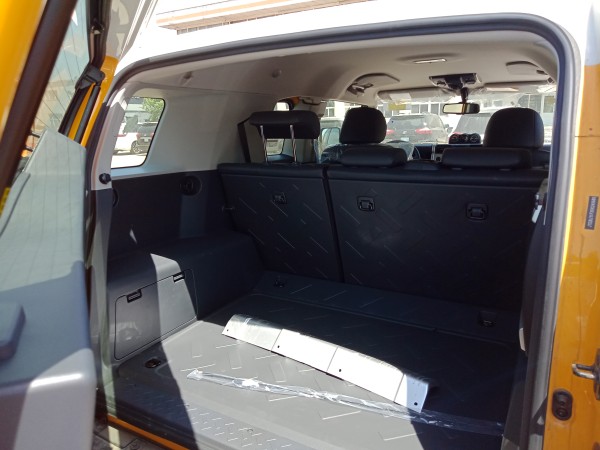 丰田 酷路泽FJ在许多方面继承了FJ40的经典,比如圆形的前大灯,经典的带丰田标志的车前格栅,笔直的挡风玻璃,别具一格的白色圆浑方正的车顶,车身 后部的四分之一车窗以及后部宽大的空间。在尾部的保险杠上设置了深色的踏板,这个踏板承重能力很强,完全可以站上去。接下来我们来看一下该车的内饰内容,真皮座椅的舒适度是非常棒的,中控采用的按键设计看起来很是简洁,整体看起来给人的感觉还是非常不错的。
