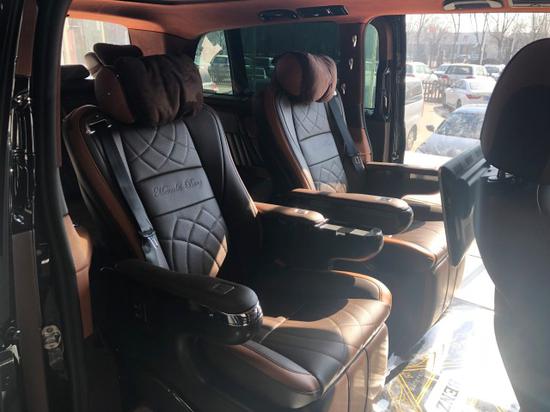 2019款进口奔驰V250配置:小窗侧拉窗、全车镀铬套件、V-class大灯和尾灯、日间行车灯、顶部行李架、实木高光装饰件+涡轮出风口、全车内饰镀铬装饰套件、四门奔驰原厂门提、全车内饰真皮包覆、曲面九宫格顶灯、奔驰原厂分体休息脚踏、四门镜面迈巴赫迎宾踏板、咖啡真皮仪表台、手动窗帘、进口翻毛绒顶棚、进口纯羊毛地毯、行政会议桌、12.1英寸后排头枕娱乐屏、前排奔驰原厂扶手加12L温控冰箱、前排电动座椅手改电带通风加热、迈巴赫旋转电动航空座椅奔驰原厂开关、第三排180°电动沙发床奔驰原厂开关、后排折叠小桌板、倒车影像。