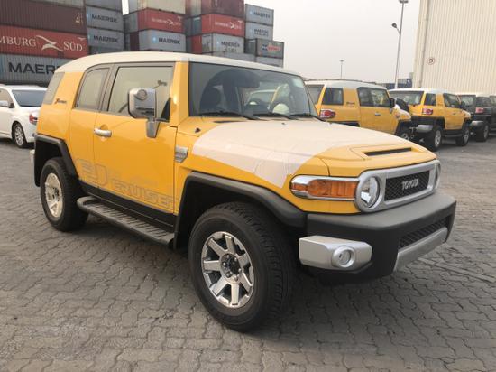2019款中东版丰田FJ 酷路泽顶配极限运动 环保公开,手续齐全。多种颜色供应选择,颜色不同价格不同,颜色有:黄色,蓝色,灰色,红色以及白色。配置:8气囊,双油箱159升,胎压监测,儒行模式,双差速锁,JBL高级音响,10扬声器,265/70R17合金轮毂,车身镀铬,挡泥板,发动机防盗,脚踏板,数码钟,前后雨刮,蓝牙免提,收音机,6CD,USB,AUX,多功能方向盘,带音量、蓝牙控制,巡航定速,电眼,倒车影像,前雾灯,脚垫。