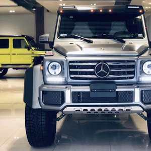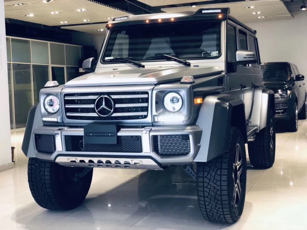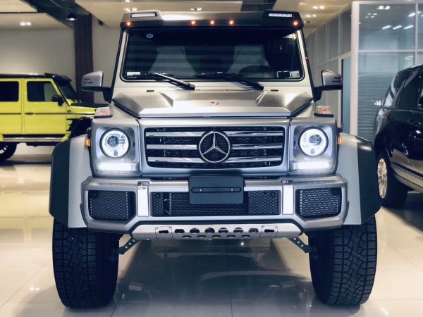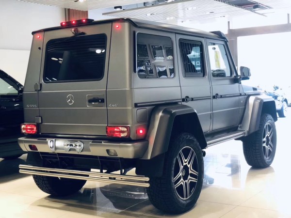 2019款奔驰G500 4*4基于G500标准版打造,仍由奥地利格拉茨工厂生产。两车共用结实的梯形车架,轴距同为2850毫米。但动力系统源自新近推出的AMG GT,底盘借鉴了G63 AMG6×6的设计,此外还对车身进行了一些修改。奔驰G5004X4²不过外观并不低调,前保险杠被分成了三个方形的进气口。奔驰G500 4*4轮圈则装上了和AMG款式相近的大五星款式,并采用黑色设计,加上整个黑色的车身,流露出霸气的气质。