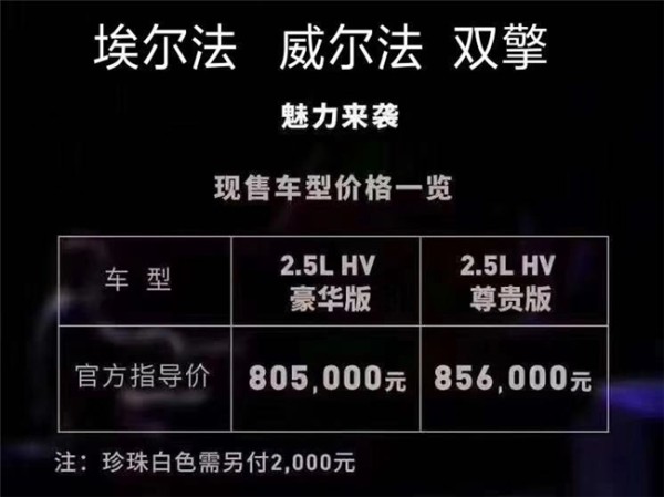 丰田埃尔法/威尔法85.8万白色