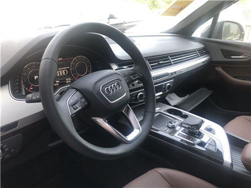 内饰方面:2019款奥迪Q7的内饰造型是典型奥迪风格,材质高档、做工精细,真皮座椅和方向盘、深棕色木纹装饰的点缀都体现出了低调的豪华感。还有仪表盘的水滴造型很别致,中控台的功能键排列。