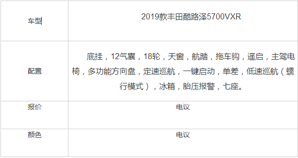 19款丰田酷路泽5700VXR配置详情: