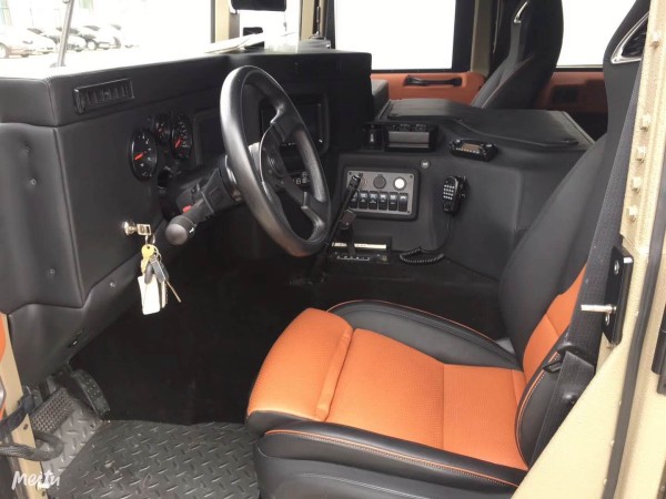 因为采用的是军用可拆卸式车门,所以看起来颇为简单硬朗,Humvee C配备了副油箱,总共拥有120升的超大容量,在车头两侧,极具特色的军用LED射灯也被保留了下来,Humvee C采用的门式桥结构,极大地提高了它的通过能力,Humvee C装备了固特异37“ x 12.5” R17LT MT轮胎,并配备了中央充放气系统,为了搭配门式桥结构并进一步提高离地间隙,Humvee C采用了特殊的轴间刹车系统,同样是为了减少底盘厚度的目的,Humvee C的排气管也是从侧面伸出。