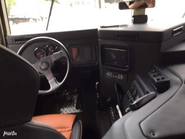 Humvee C的钢板用了800多颗铆钉铆接在一起,结实程度简直堪比装甲车,车内的整体结构还是军车的样子,不过在材质和细节方面做出了一些改动,Humvee C更换了订制的赛车座椅,舒适性和包裹性都不错,原先给机枪手站立的位置,如今被改成了储物架,不过这个储物架貌似有点太大。了。