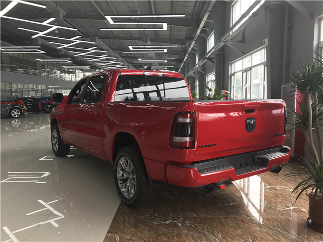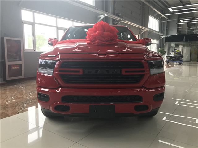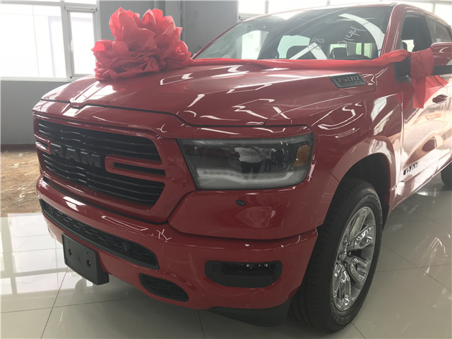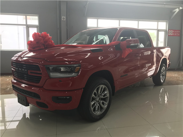 车型:19款道奇公羊运动版 配置:8.4寸触摸屏,苹果互联系统,电动折叠加热后视镜,前后脚垫,备胎 设备组二级包:115V电源插座,双区空调,前后电眼,感应式雨刷器,遥控启动,单碟CD,通用车库门开启,无钥匙进入,一键启动,前座椅通风加热,方向盘加热,刹车油门电动调节,后窗除霜 5.7L V8 8速自动挡,客户首选包,20轮,真皮座椅,3.21后桥比,后轮距防滑,黑色双排气,设备组二级包,全景天窗,LED阅读灯,盲点监测,倒影,7寸彩色仪表盘,前座椅8项电动调节,4项腰部支撑,前座椅通风,鲨鱼鳍天线,多功能方向盘,巡航定速,蓝牙电话,电子驻车 长_5916。 宽_2084。 高_1971。 轴距_3675。前轮距_1741。 后轮距_1729。 整备质量_2295kg。最大载重量_835kg。最大拖挂重量_3715kg。油箱容积_98L。 货箱尺寸_1711。 最大马力_401 最大功率_295。 最大扭矩_556Nm