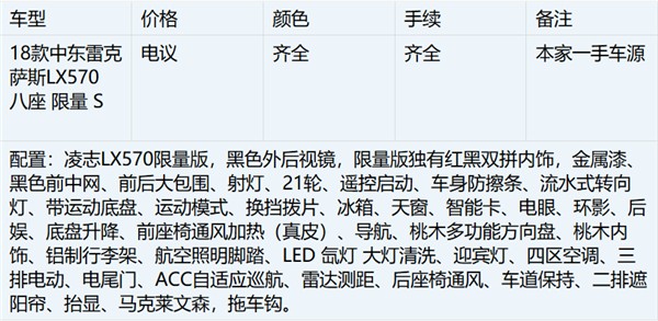 2018款雷克萨斯LX570雍容与狂野的交织,以高贵诠释不羁 承袭古典艺术的精髓,在硬朗身姿中注入优雅 气度,卓尔不群,自成非凡气象。前脸气势磅礴的前大灯设计,透射出勇往直前的坚定目光;结合侧面贯穿全车的腰 线,倍显其彭湃动力而不失沉稳气质。雷克萨斯LX570一大亮点即增加了越野转向辅助功能,配合自动爬坡控制系统,能够减小转弯半径,提高转向性能,提升越野表现。繁华与盛大的辉映,以内涵演绎格局,于至臻至善的细节处,彰显尊崇深厚的内在修为。