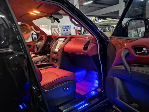 19款途乐XE 车内布局为三排7座,内饰整体风格豪华,真皮座椅、DVD娱乐、上下坡以及胎压监测等装备也都悉数出现。日产尼桑途乐内饰材质也更加的考究,使用了皮革,铝以及木纹样条作为点缀。中控部分的设计比较具有豪华感,标准日系豪华车的风格,BOSE音响是很多中高端车所选用的,音响效果不会让你失望。