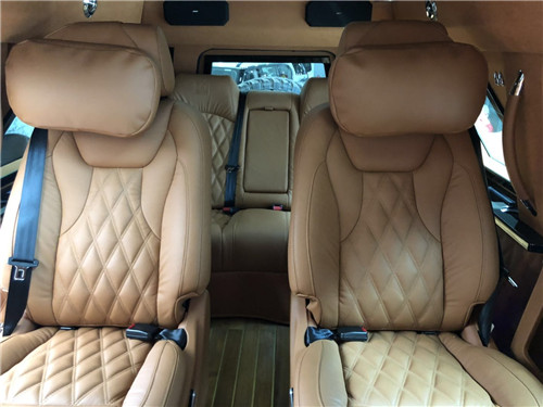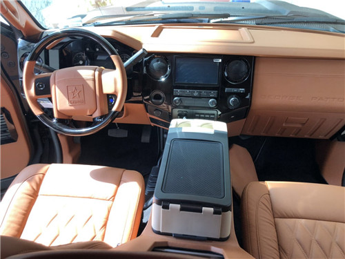 如果只看乔治巴顿的外观,脑中想象它的内饰一定是像军用车一样简约硬朗的设计风格。但当你拉开乔治巴顿的车门,内饰所展现的豪华一定会让你大吃一惊。精致纯手工缝制的真皮座椅,被皮革以及实木材质包裹的仪表台整体营造出了一种优雅古典的驾驶氛围。19新款乔治巴顿装甲越野商务车四座/六座车内布局一定会被想象成战车那种简约硬朗的驾乘风格,但是当您拉开车门,车内所展露的豪华设施定会为之而惊讶内饰,座椅纯手工缝制,看上去非常舒服,有着一种优雅古典的格调。