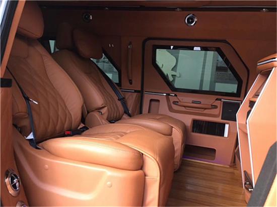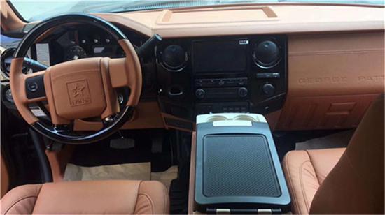 乔治巴顿战车后排航空座椅电动多向调节,加热按摩功能,车顶探照灯,高级鹿皮及乔治巴顿标志全舱柚木地板,吧台3D式设计、白色光带及氛围灯,座椅中央扶手,马鞍式设计带击沉触摸控制系统,可开启式天窗。驾驶舱内还有夜视系统、卫星导航、防生化毒气系统、供氧设备等安全设备,还有多媒体影音视讯系统、高科技卫星侦测系统。