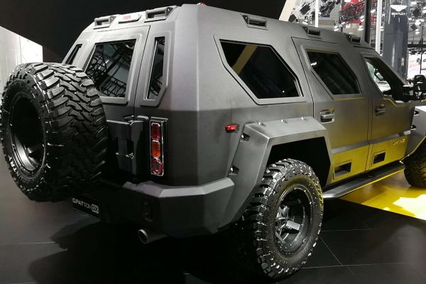 “乔治巴顿”越野车的内饰可以用“奢华”、“精致”、“体贴”来形容。后舱采用了豪华商务车布局,内饰色调以米白色。酒红色两种搭配,北美皇家桃木做以装饰;前、后舱之间设有隔屏,配以22寸超薄显示器,在最大程度上保证了后舱乘客的私密性的同时又可以在旅途中享受影音快乐;舒适独立的多功能电动真皮座椅,让您置身其中会忘记自己身处外观如战车般的乘坐舱内。