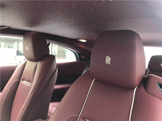 劳斯莱斯-魅影内部最大的亮点在于星空饰顶,“繁星”由1340条光导纤维组成,原理不难理解,包括这繁星点点也都是纯手工制作而成。在车内您可以尽情的享受浪漫,温馨的氛围。劳斯莱斯魅影内饰总体格局与古斯特相同,细节处有不少精巧的变化,内饰的整体设计并无重大改动,但一些细节修饰很能讨人喜欢,比如尖端为红色的表针,旋压钮上的仙女图案,淡绿色的屏幕显示,Starlight 星光顶篷等等,都扣住一个“雅”字。