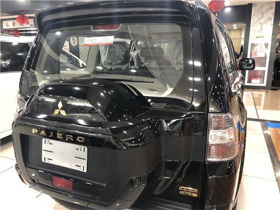 帕杰罗顶配型号增加了金色徽标套件。它的中网徽标、机盖立标、轮圈中心徽标、尾门上的排量标,以及备胎罩上的徽标和大字母,全都变为了金色。