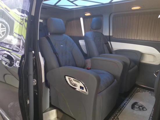 奔驰V250工作台超大屏显示触摸屏,真皮包覆方向盘进口缅甸胡桃木17手工工艺打磨的工作台,使其更有质感。奔驰V250主副驾驶座椅真皮包覆,门板整体真皮包覆。整洁舒适的驾驶舱,配备了超大高清导航屏,乘客舱配备了、一键自动按摩、车载冰箱、触摸控制屏、通风等智能化生活工具。