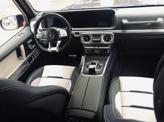 19款全新G63内饰方面,新G63保留了新G500的整体设计,除配色差异外,新车还换装了全新造型的平底式AMG运动方向盘,其两侧配以打孔皮质包裹,下部镀铬装饰的造型也与新G 500明显不同,看上去十分战斗。此外,全液晶仪表盘+中控大屏的双12.3英寸屏幕设计在新车上也没有缺席,营造出了浓郁的科技感。