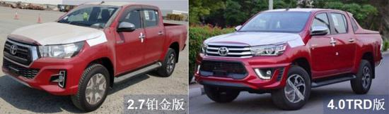 19款丰田海拉克斯皮卡2.7汽油 铂金版 红/黑 蓝/黑 (新款)(预售价格33-34万)