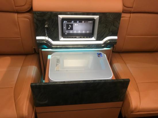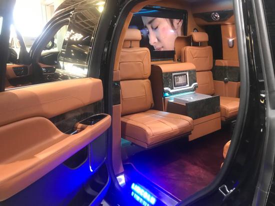 座椅方面,它采用的是高级真皮座椅设计,并配备了12向电动调节、头枕自动升降、通风、加热以及多点自动按摩功能,舒适度绝对是没得说。此外它还采用了自动升级的40寸超大高清电视、法国劲浪5.1声道环绕立体声发烧音响、中控电动隐藏迷你咖啡吧、后舱高级酒吧以及超大容量的冰箱,这就营造了高档舒适的后舱环境,既可商务使用也可私人放松休息。