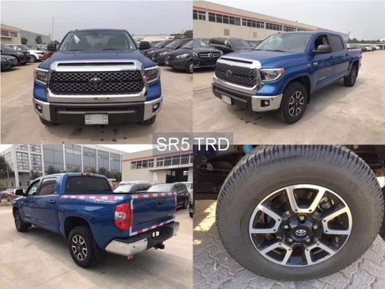 19款丰田坦途SR5 TRD 白/黑 黑/黑 蓝/黑 红/黑 (4座手续)配置:主驾驶员电动驾驶座椅,导航屏,倒车影像,前后电眼,车库门开启,油箱底护板,TRD贴花,电动天窗,防盗系统,自动防眩目带指南针后视镜,前排座椅加热,前后加强避震器,越野轮胎,电动后车窗,18寸越野铝合金轮毂,LED远近光自动检测大灯,LED雾灯,LED日间行车灯,LDA车道偏离预警系统,PCS碰撞预警系统。 6月中旬交车