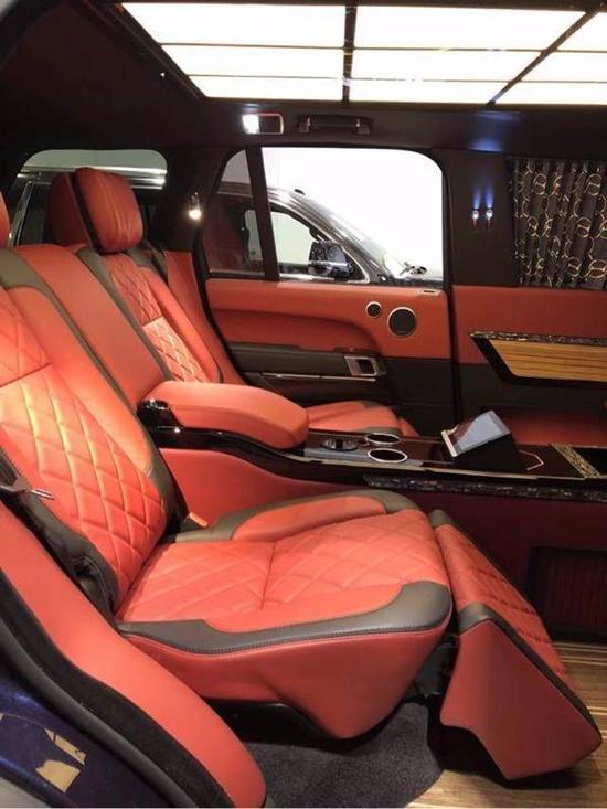 路虎揽胜皇家一号后车舱绝对是为真正的老板设计的,宽绰有余的超大空间,航空头等舱按摩座椅加持,搭配完备奢华的影音系统,直接在车上就能k歌娱乐。可 升降电视将驾驶舱完全隔绝,绝对保证了隐私性。吧台还用了大量豪华高光钢琴漆增加了奢华感。头等舱里的全景天窗更是途中必不可少的透光采风之处。内饰的部分是运用了彰显贵气、同时也便于打理的颜色系,选材自北欧极寒之地的纯正小牛皮;另外我们可以看到在这款路虎揽胜行政创世加长版的内饰风格,无论是视觉享受、细节触感、座椅的舒适度调教,都有原型中规车难以望其项背的优越性。