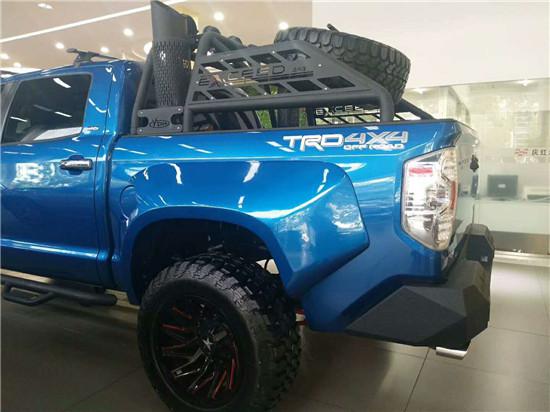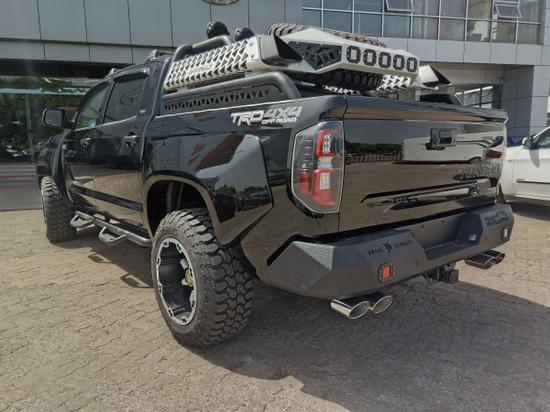 丰田坦途一直作为经典皮卡,5.7大排量发动机,通过性强,非常适合越野,关键是对油品要求不是很苛刻,维修保养费用也非常便宜,改装空间大,所以近几年销量一直挺不错。本期改装车的素车为坦途TRD,。作为改装潜力最大的全尺寸皮卡,坦途的改装案例其实非常多,底盘举升高度从2——12英寸、前后杠风格从攀爬到穿越。可以说,上至发动机进行机械增压升级,下到拖车钩的小装饰,坦途每一个部位都有数十种不同品牌和风格的改装零件,选择程度非常丰富。