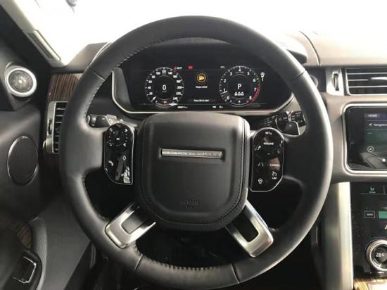 19款全新路虎揽胜行政3.0汽油加长版中控台高档木料搭配,卫星导航系统,上下两块DVD超大显示屏,方向盘上分布着快捷按键,与老款相比方向盘上的按键也改成了触控的形式,使驾驶者更舒适的操控,充斥着满满的科技感。路虎揽胜行政中控台更宽、更精致,按键少了一半,大多数基本控制功能近在咫尺。由精美真皮和甄选实木装饰的表面干净优雅,散发出安详平静的感觉。新款路虎揽胜行政内饰一如既往的精致内敛,如同绅士。