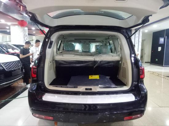 19款QX80的座椅就像是一个大沙发,日系车的细腻用在这款英菲尼迪QX80真的毫不夸张。二排的空间真的是非常的大,丝毫不会感觉到其它七座车型的拥挤,完全可以翘腿而坐。就算是三排空间也丝毫不逊色于商务车。这款QX80不论是空间还是外观,只能用一个字形容,那就是“大”