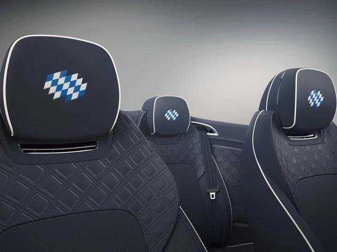新车基于现款欧陆GT敞篷版打造,并由宾利设计主管Stefan Sielaff进行专属化设计,采用Glacier White(冰川白)车漆搭配Imperial Blue(帝国蓝)软质顶棚,与同为蓝白配色的巴伐利亚旗帜相呼应。此外,新车的前翼子板贴有巴伐利亚地区旗帜标识,进一步彰显其独特的气质。