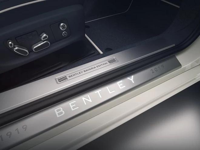 内饰方面,新车采用了与车身同色的白色饰板设计,带来很好的整体感。此外,新车的头枕处绣有巴伐利亚旗帜,迎宾踏板处则配有“BENTLEY BAVARIA EDITION”字样铭牌,无不在高调宣示着该车的特殊身份。