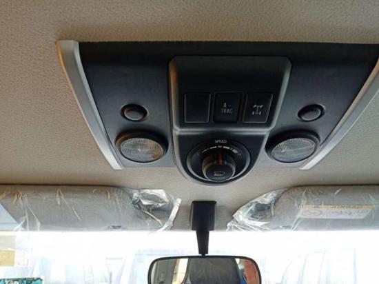 配置配置:5速自动变速箱、双油箱、手动空调、防水织物座椅、烟灰盘、车身同色仪表盘、电动车窗、真皮方向盘、动力转向、中控锁、脚垫、中央控制台、8扬声器、ABS、A-TRC、两气囊、车身稳定控制、差速锁、无线遥控门锁、银色门把手、银色车门后视镜、js后窗刮雨器、电动后视镜带照明、脚踏板、银色散热隔栅、前底盘护板、蠕行模式、大屏倒影、巡航定速、后倒车雷达、气泵