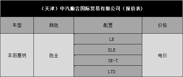 平行进口塞纳有三个国家版本:美版,墨版和加版。美版由于顶配配置低于加版,而性价比上又不及墨版,所以,一直不太受中国消费者待见,导致美版车源量寥寥无几,不及加版的零头。19款就更是如此了,所以,2019款塞纳,目前只有加版和墨版车源。(了解更多资讯请拨打文章底部咨询电话)