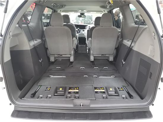 19款丰田塞纳3.5L第三排座椅收折也十分方便,收折起来地板全平,储物空间几何放大,拉大件物品完全不是事。另外,第二排座椅还可以完全拆卸移出车外,必要的时候可以充当一台货车使用,这也就是美国人把塞纳列入MINI VAN的一个原因。(了解更多资讯请拨打文章底部咨询电话)