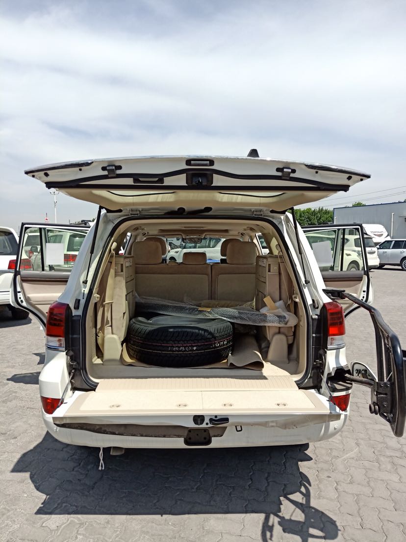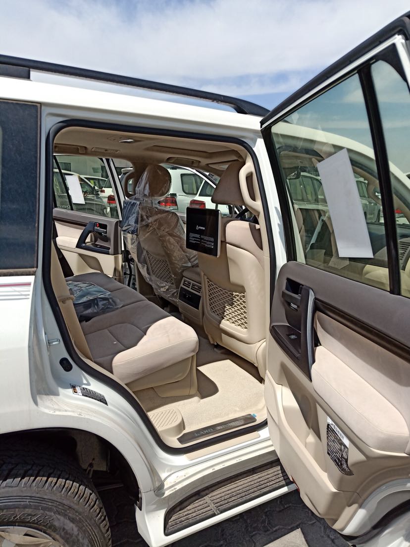 颜色:白/米配置:金属漆,天窗,外挂,八气囊,绞盘,主驾电动座椅,大屏,冰箱,头枕后娱,氙灯LED,无线充电,智能卡一键式启动,多功能方向盘,巡航定速,桃木内饰,电动折叠后视镜,镀铬中网,雾灯带镀铬,转向灯带镀铬,19款彩条,航踏,门边防擦条,镀铬门把手,18铝轮,胎压监测,中差速锁,低速蠕行模式,七座丝绒座椅,小尾翼,黑色行李架,拖钩,前二后二电眼,迎宾灯,自动空调,防眩目后视镜,三排遮物帘
