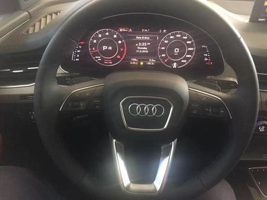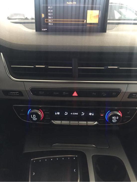 内饰部分,奥迪的内饰一直以来都更新的比较慢,常常被拿来与奔驰做比较。但是在这台Q7上,展现出来的是与车价一样的奢华品质,豪华感倍增。大量的实木装饰面和镀铬面板修饰中控台,多功能方向盘也更便于操控,并且方向盘的设计非常注重细节,手握部分有凹陷,握感舒适,也可以进行电动调节,寻找属于自己的最舒适的驾驶角度。