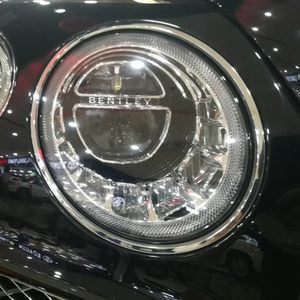 宾利添越前脸采用了四只独具特色的悬浮式全LED前灯,在中网格栅、前保险杠两侧与中央格栅部分,均为镀铬网状造型。前脸依旧采用家族样式,四圆灯的经典传承得到延续。为了减少车身的完整性,尽量减少不必要的开孔,大灯清洗被和谐的藏在日行灯圆圈内,摄像头被藏在了这头中间位置,经典的四个圆形车头灯采用全LED光源,犹如宝石般璀璨夺目,灯腔内带有宾利家族的专属字样。