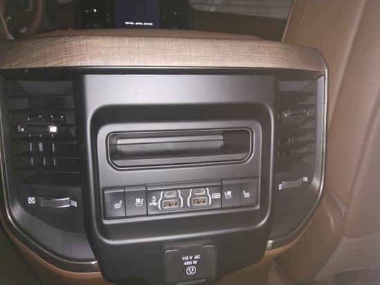2019款道奇公羊5.7L长角号皮卡真皮座椅摸起来十分舒适和细腻,很多细节地方也做得相当精致,后排座椅则有通风和加热设备,并且配备了一个小型存储工具箱,可见此款车的设置是十分人性化。车内的细致工艺体现了道奇公羊皮卡优良的传统,中控台上的按键尺寸较大,就算寒冷气候戴手套也能轻松操作。
