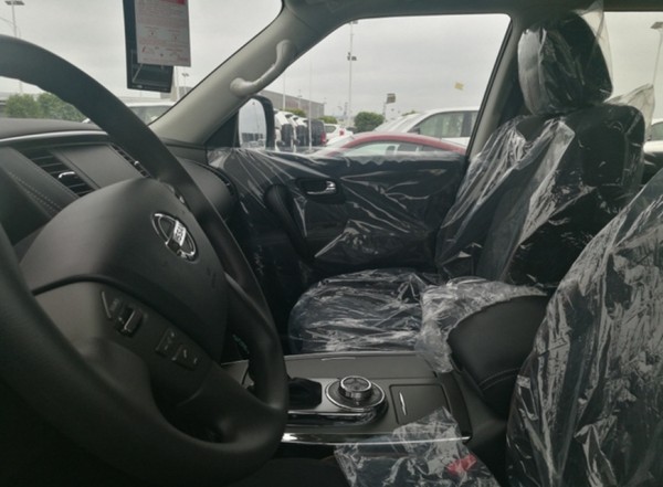 日产途乐Y62在内部整体采用了深色调的颜色搭配,带来具有高贵感的内饰氛围。同时,该车中控台及方向盘运用了大量的皮质包裹,在质感的营造上也较为出色。此外,这款车在换挡杆周围等区域融入了木纹装饰,这也相应提升了其内饰整体的豪华感。