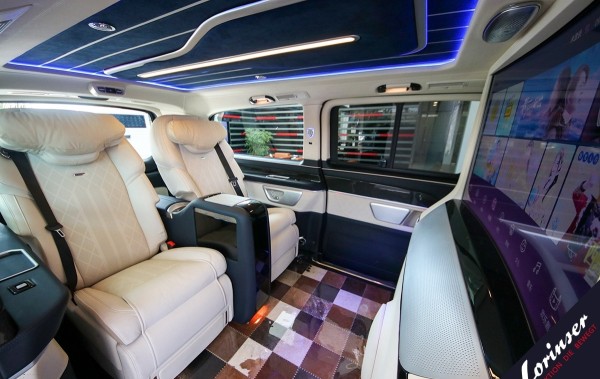 奔驰V250在内部装潢上也进行升级,车体提供真皮、Alcantara以及木材和碳纤维多种材质可供选择。而MPV车型看中的合金踏板、合金门把手以及内装台板等这款车都有所配备。科技配置还有AppleTV、两个独立15.6英寸显示屏、蓝光播放器以及DVB-T信号接收系统等。