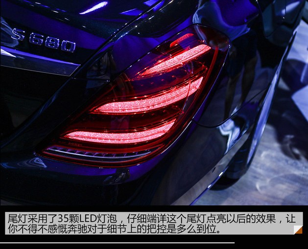 车尾设计十分简洁,尾灯采用了分体式设计,每侧都有三个矩形LED光源,具有很高的辨识度。后备厢盖中央则标有Maybach的大写英文标识。