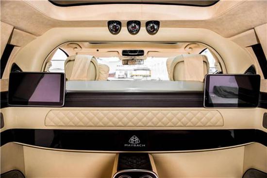 奔驰迈巴赫S600内部装饰延续了之前迈巴赫62的设计风格。后排贵宾座采用航空座椅设计,相比古斯特和飞驰更显奢华。在后排两张座椅的中间设置有车载冰箱,后车门结构经过了重新设计,同时在门板上还有独特的点缀。