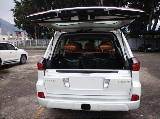 雷克萨斯LX570配置: 21轮全景天窗 LED灯电动调理外后视镜风挡玻璃除冰除雾功效铝制行李架换挡拨片多重迎宾灯便利进入体系高级真皮座椅实木内饰 10项电动可调座椅带记忆前排及第二排座椅加热前排座椅透风偏向盘加热二排手动遮阳帘冰箱巡航智能卡电吸门四区空调高档音响后娱 360环影照明脚踏全彩仰面显示多地形反馈胎压并道盲点雷达测距。