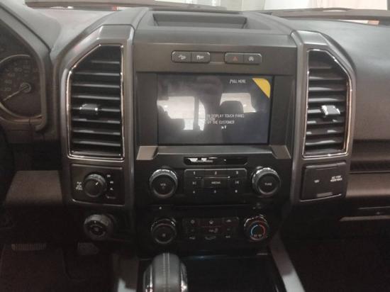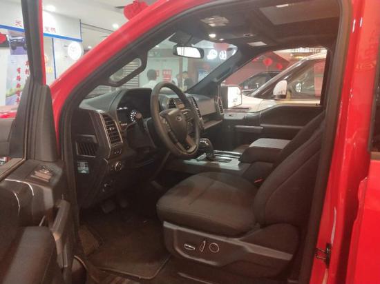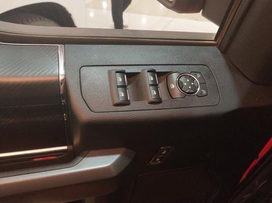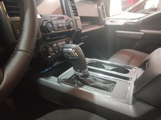 19款福特F150车内配备标准独特的皮革和布艺装饰的座椅,驾驶员侧的电动十向调节。这些座椅同时具备记忆功能。中央控制区搭配了触控式显示屏,其下方则是多媒体控制区及空调面板,采用旋钮+物理按键的组合。中控功能区域可分为三个小控制区,最上端为音响控制及导航控制,中间为收音机调节控制,最低端为空调及座椅加热控制。